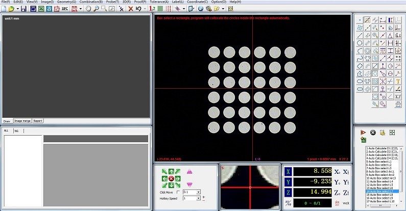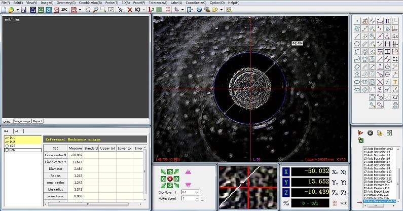 Автоматический фокусировать, автоматический измерять, матрица измеряя, программа может иньпут файлы ДСФ, для того чтобы достигнуть сравнения с изображением части или измеренным графиком.